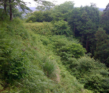 少し降りて周囲を歩いてみると城山(公園)としているところと植林地の境界がはっきりと