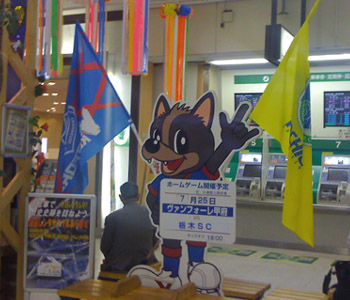 ちなみにこの時でも駅改札のマスコットは甲府と栃木のフラッグを持っていました(笑)